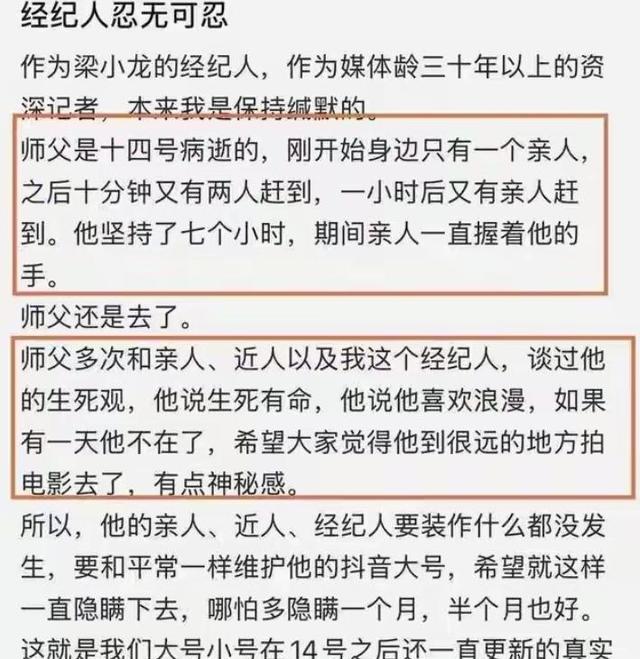 按照梁小龙的遗志,亲一又们本贪图低调消散他的恶耗,链接爱戴酬酢账号,哪怕多消散一段时间也好。